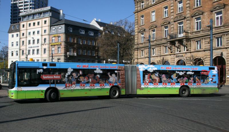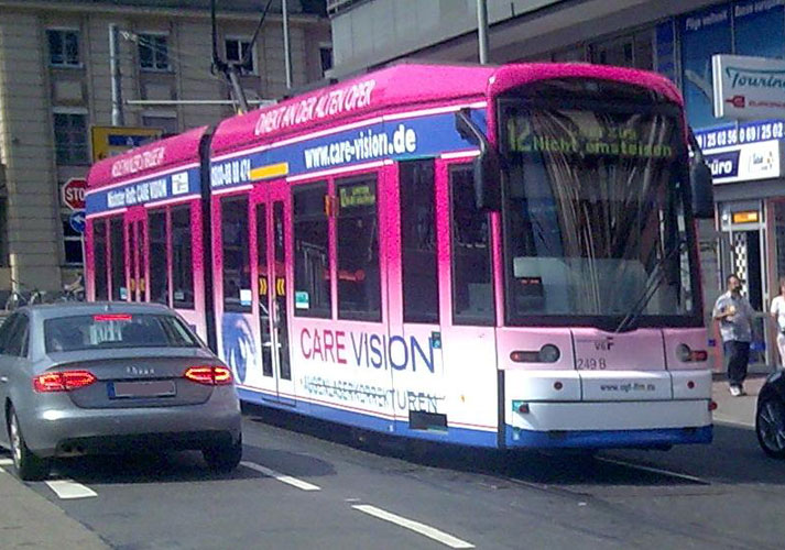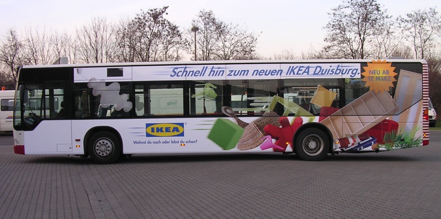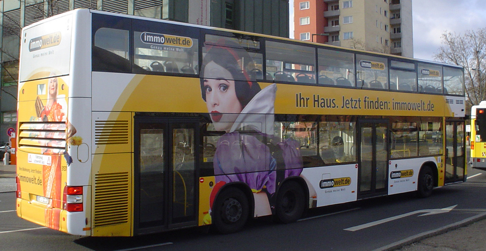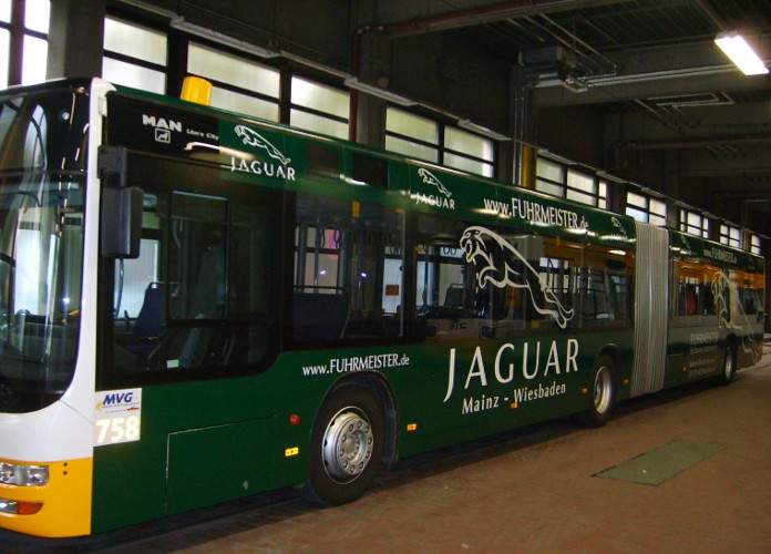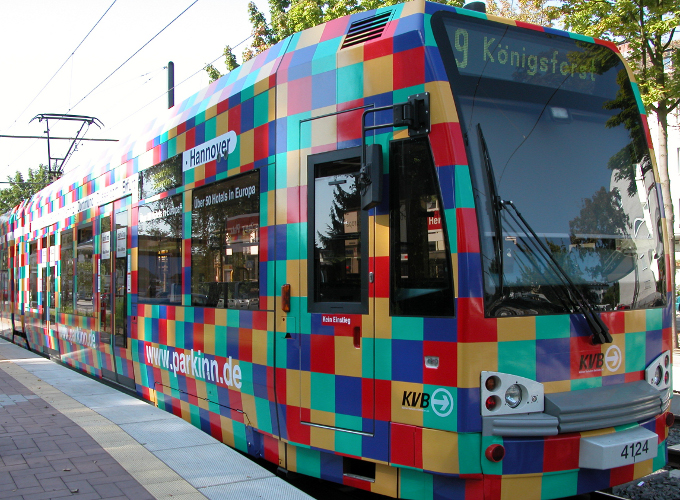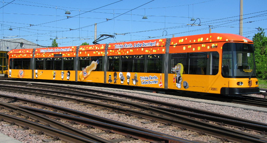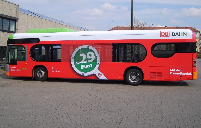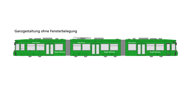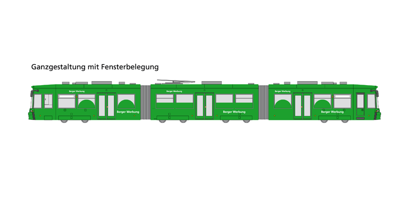 Als Ganzwagengestaltung Plus sogar mit den Fensterflächen. Hier nutzen partielle Fensterbeklebungen zusätzlich die Glasflächen von Bussen und Bahnen.