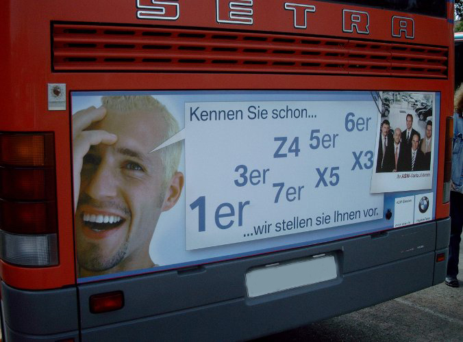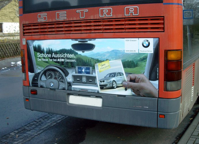 Die Heckfläche ist die meist gesehene Fläche an Bussen - sowohl an Bushaltestellen als auch im normalen Straßenverkehr.