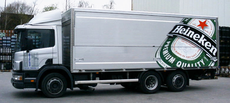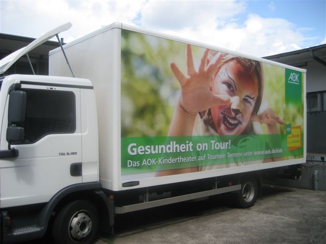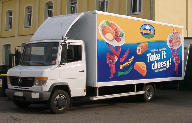Die Beschriftung von LKWs oder Kleintransportern und Gestaltung von Promotiontrucks bieten eine besonders auffällige Art der Transportmittelwerbung.