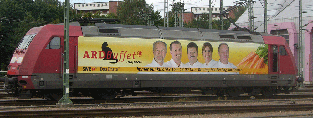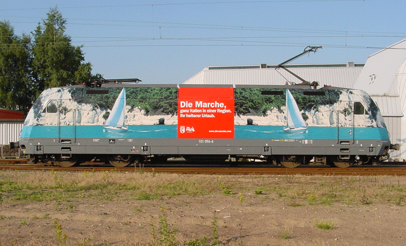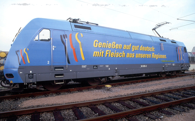 Die Loks der Baureihe BR 101 der Deutschen Bahn AG sind ein außergewöhnliches Werbemedium, mit einer Werbefläche von 99 qm!