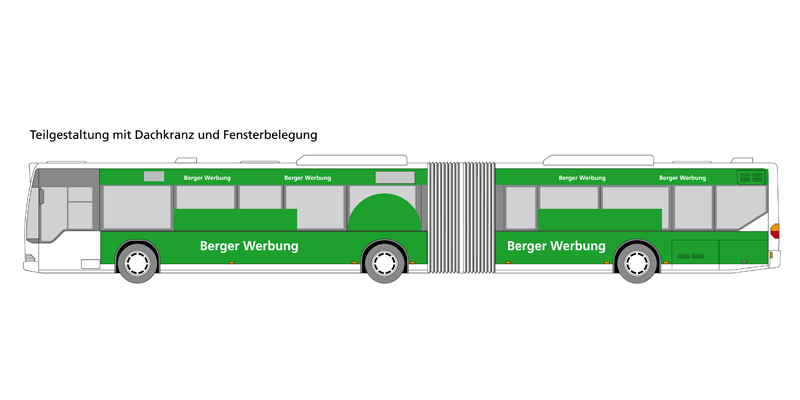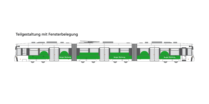 Innerhalb der Teilflächengestaltung bei Bussen und Bahnen gibt es viele unterschiedliche Belegungsarten. Wir beraten Sie gerne zur für Sie geeigneten Belegungsart. Denn je nach regionalem Verkehrsbetrieb sind die Möglichkeiten verschieden.