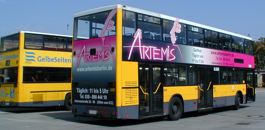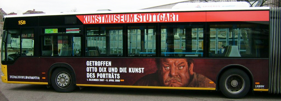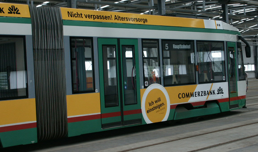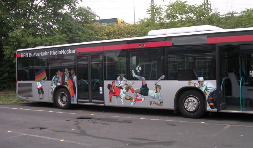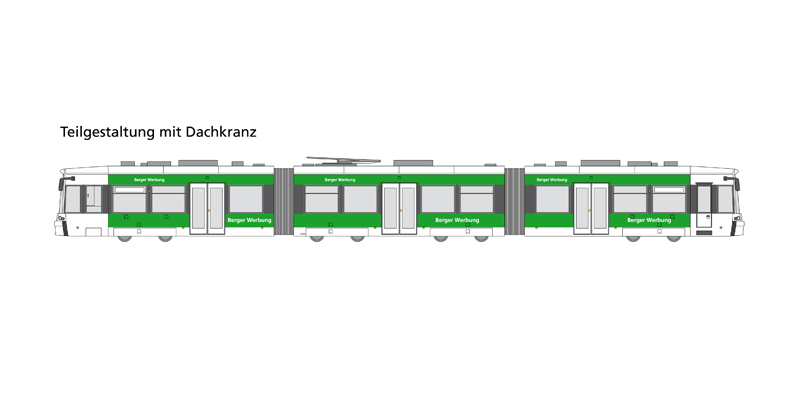Diese Beschriftung des kompletten Blechbereiches reicht als Halbganzbemalung von unterhalb der Fenster bis zur Fahrzeugunterkante an beiden Seiten der Busse und Bahnen.